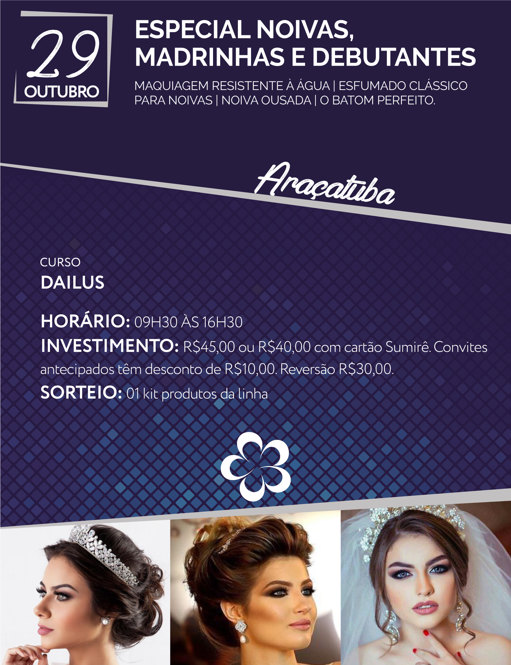 Investimento: R$45,00 ou R$40,00 com o cartão Sumirê.