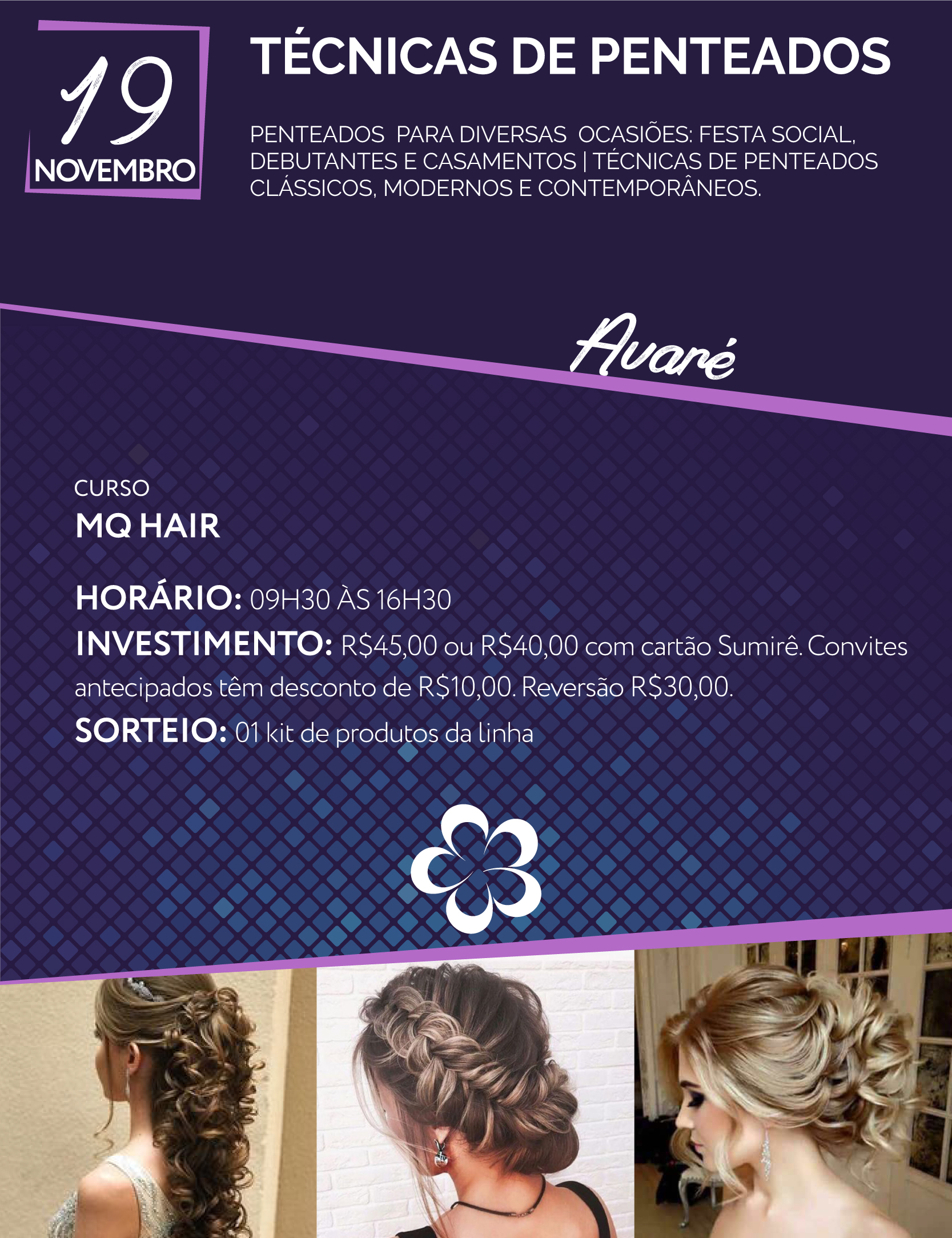 - Penteados para diversas ocasiões: festa social, debutantes e casamento