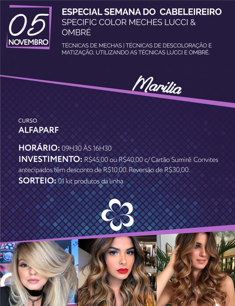Investimento: R$45,00 ou R$40,00 com cartão Sumirê.